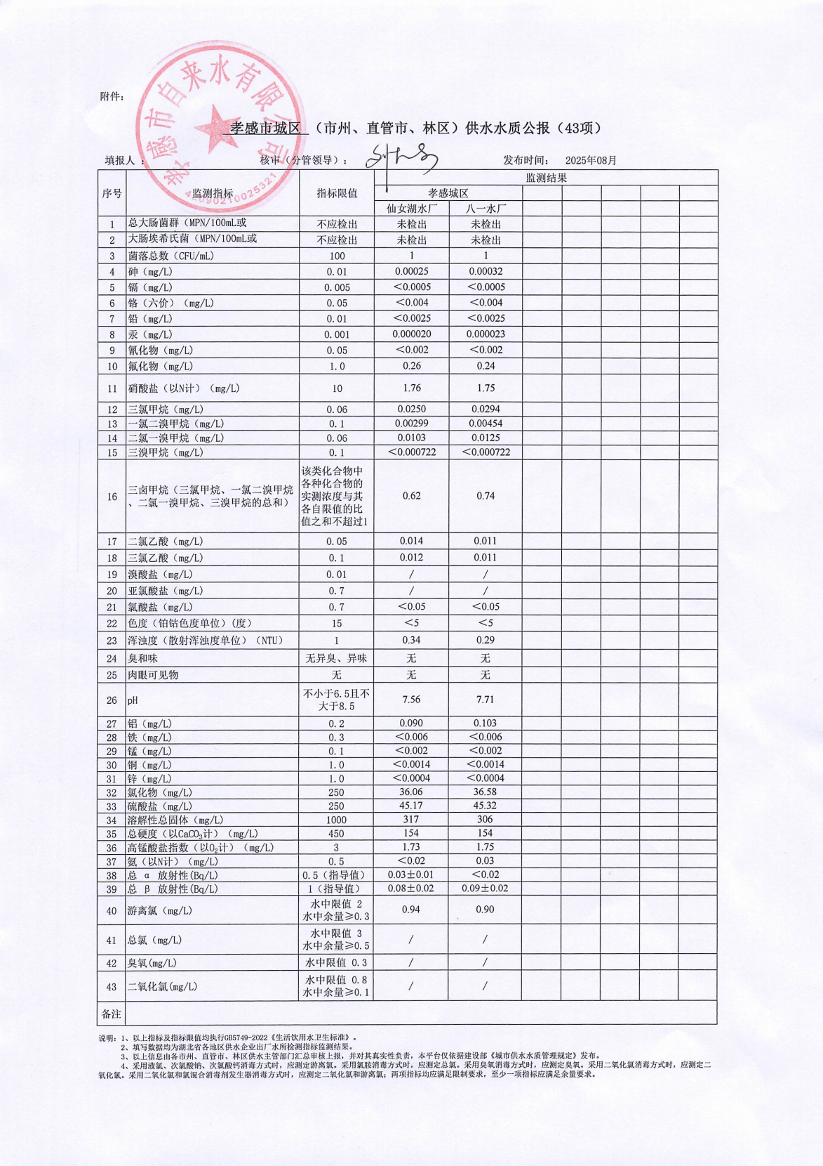 2025年8月水質(zhì)報告